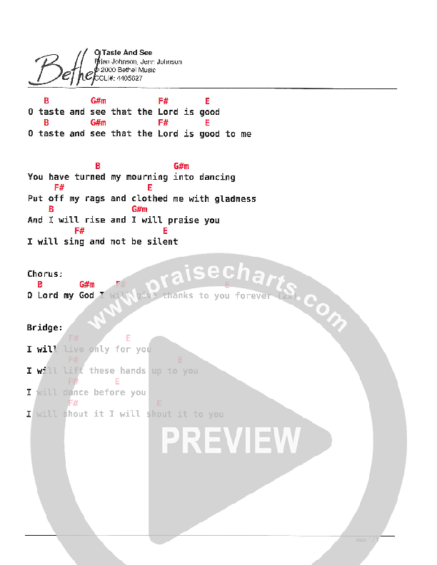 O Taste And See Chords PDF (Bethel Kids)