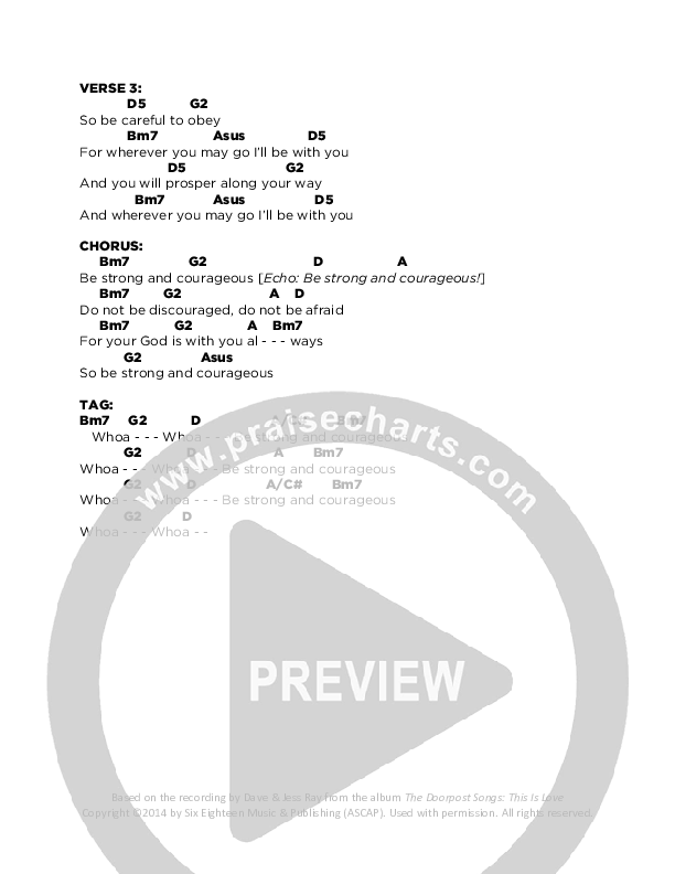 Download the PDF Chord Charts for Strong and Courageous by Doorpost Songs / Dave and Jess Ray, from the album This Is Love.