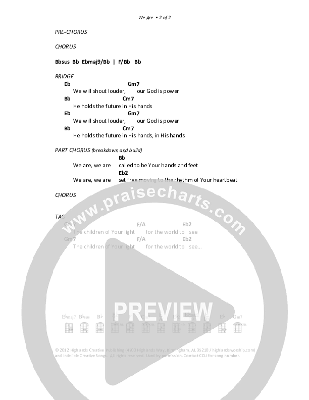 Download the PDF Chord Charts for We Are by Highlands Worship, from the album Place Of Freedom. This song was arranged by Highlands Worship Charts in the key of Bb.