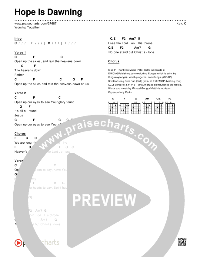 Download the PDF Chord Charts for Hope Is Dawning by Worship Together, from the album Light Has Come.