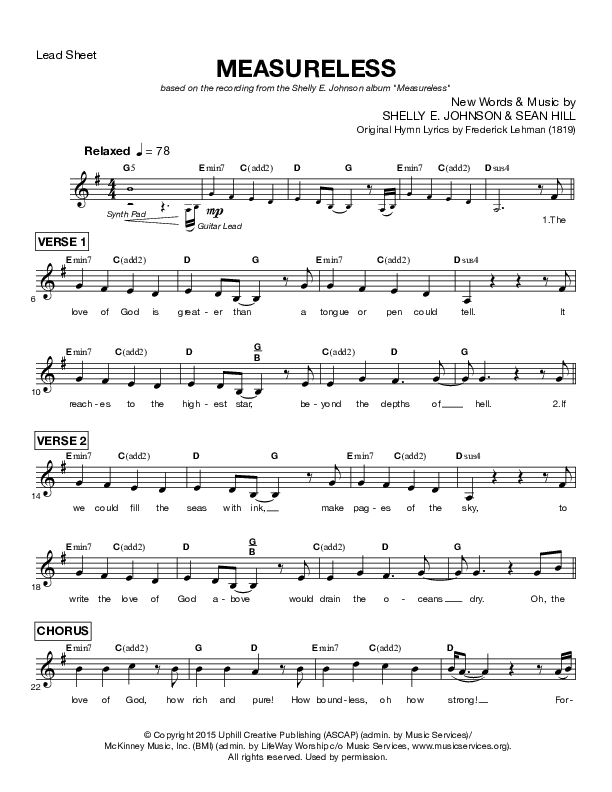 Download the sheet music for Measureless by Shelly E. Johnson, from the album Measureless. This song was arranged by Lifeway Worship in the key of G.