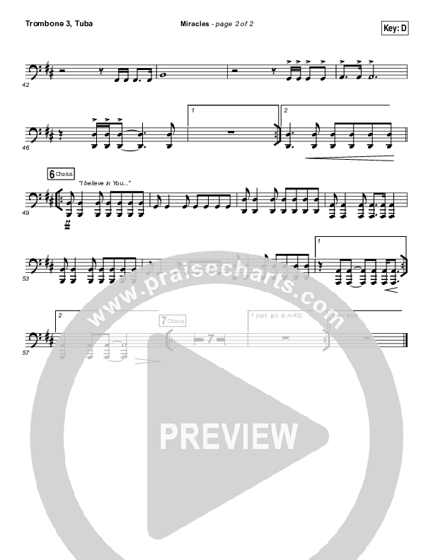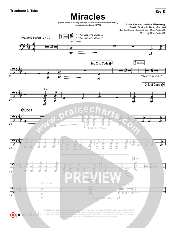 Miracles Trombone/Tuba Sheet Music PDF (Jesus Culture / Chris Quilala)