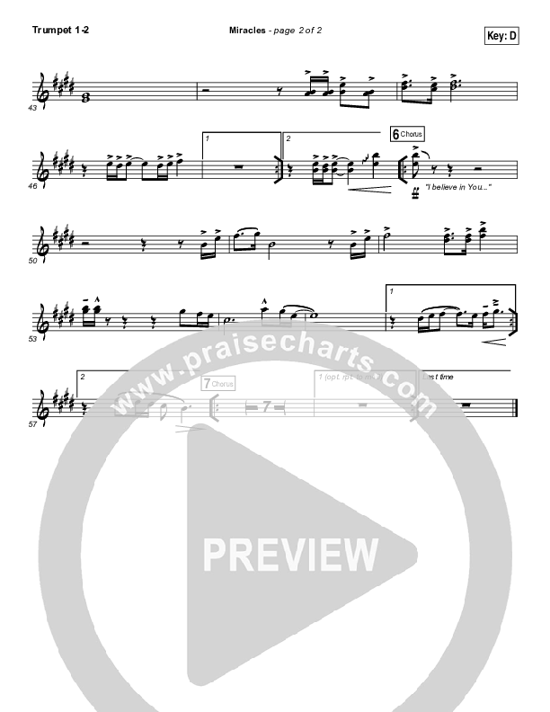 Miracles Trumpet Sheet Music PDF (Jesus Culture / Chris Quilala)