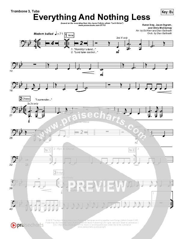Everything And Nothing Less Trombone/Tuba Sheet Music PDF (Jesus Culture / Chris McClarney)