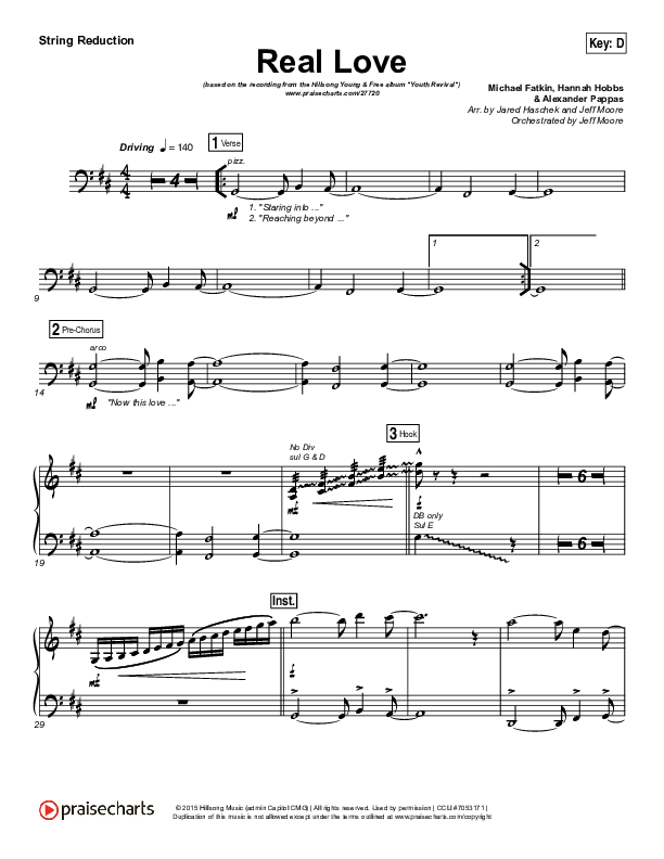 Download the Orchestration for Real Love by Hillsong Young & Free, from the album Youth Revival. This song was arranged by Jared Haschek / Jeff Moore in the key of D, Eb.
