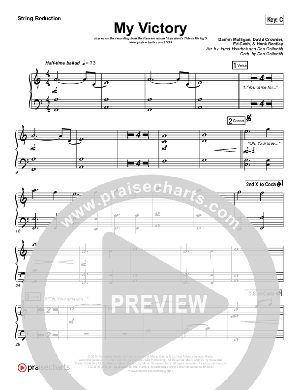 Download the Orchestration for My Victory by David Crowder / Passion, from the album Salvation's Tide Is Rising. This song was arranged by Jared Haschek / Daniel Galbraith in the key of A, B, Bb, C.