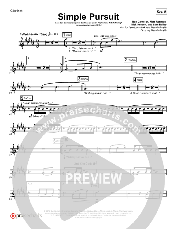 Download the Orchestration wind parts for Simple Pursuit by Melodie Malone / Passion, from the album Salvation's Tide Is Rising. This song was arranged by Jared Haschek / Daniel Galbraith in the key of A, B, Bb, C.