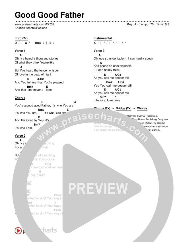 Good Good Father Chords & Lyrics (Kristian Stanfill / Passion)