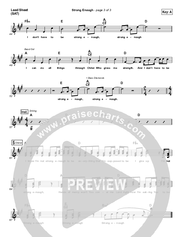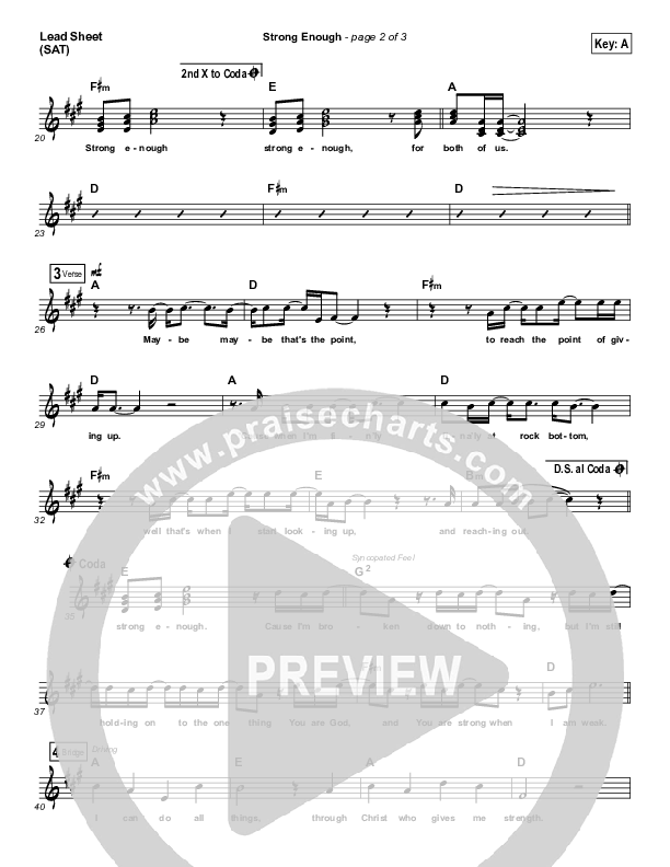 Download the sheet music for Strong Enough by Matthew West, from the album The Story Of Your Life. This song was arranged by Dustin Loehrs in the key of A, G.