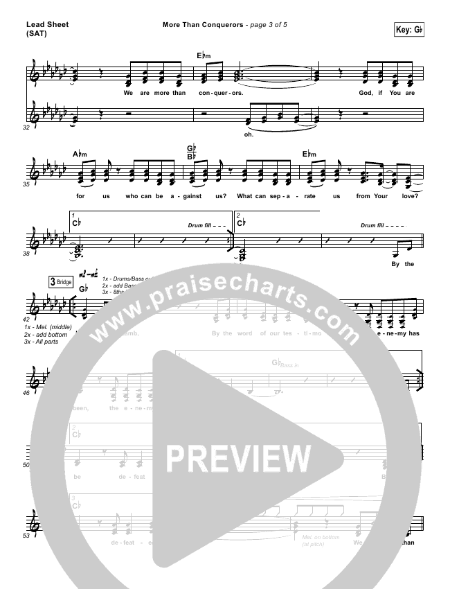 Download the Orchestration for More Than Conquerors by Steven Curtis Chapman, from the album Worship And Believe. This song was arranged by Erik Foster / Daniel Galbraith in the key of G, Gb.