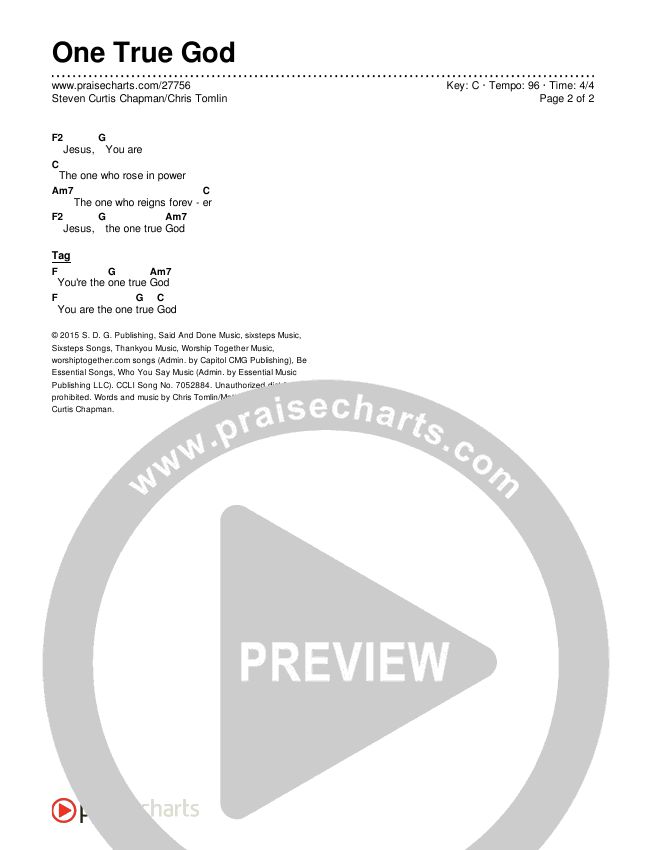 One True God Chords PDF (Steven Curtis Chapman / Chris Tomlin)