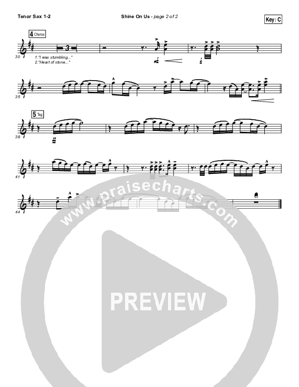 Shine On Us Tenor Sax Sheet Music PDF (Bethel Music / William Matthews)