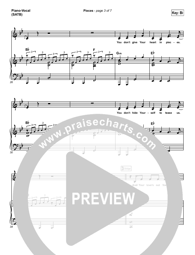 Download the sheet music for Pieces by Bethel Music / Steffany Gretzinger, from the album Have It All. This song was arranged by Jared Haschek / Daniel Galbraith in the key of Bb, C.