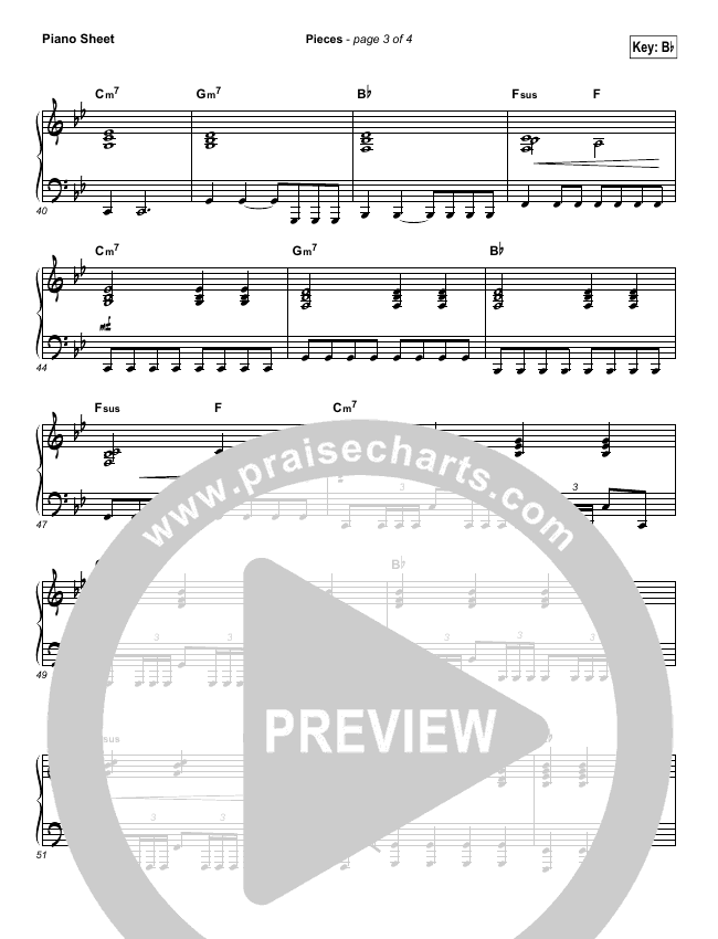 Download the piano sheet for Pieces by Bethel Music / Steffany Gretzinger, from the album Have It All. This song was arranged by Jared Haschek / Daniel Galbraith in the key of Bb, C.