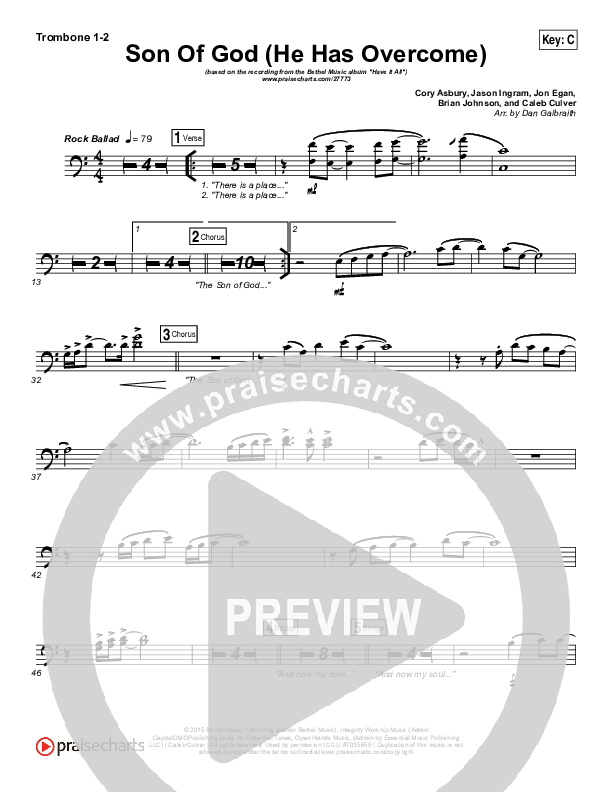 Son Of God (He Has Overcome) Trombone Sheet Music PDF (Bethel Music / Cory Asbury)