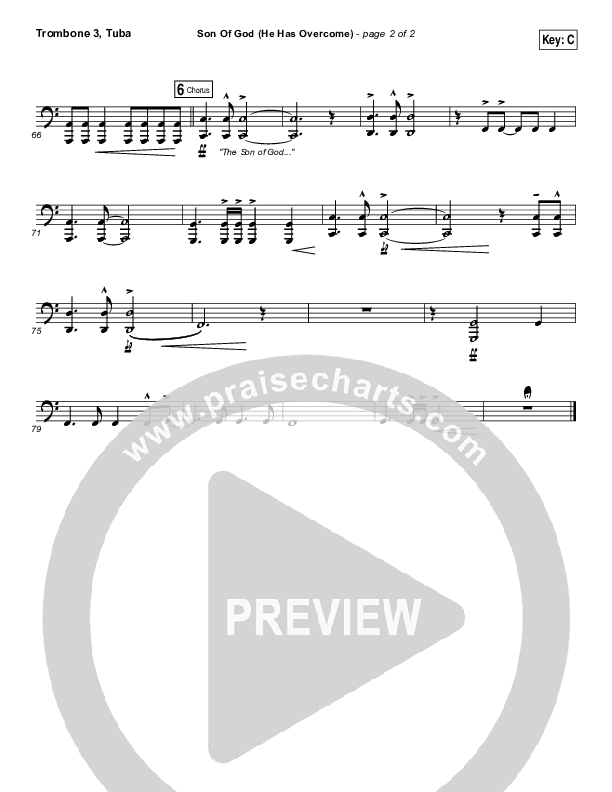 Son Of God (He Has Overcome) Trombone/Tuba Sheet Music PDF (Bethel Music / Cory Asbury)