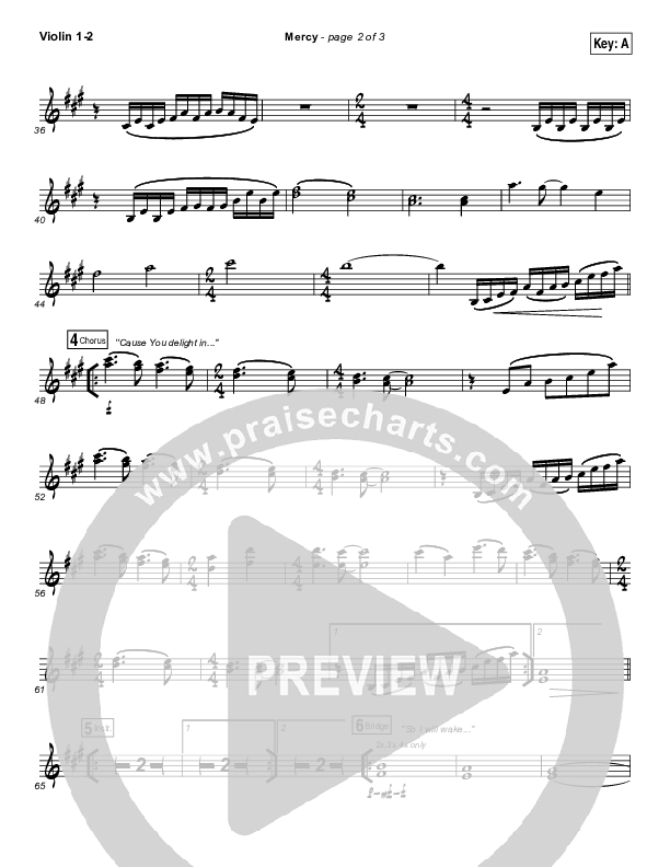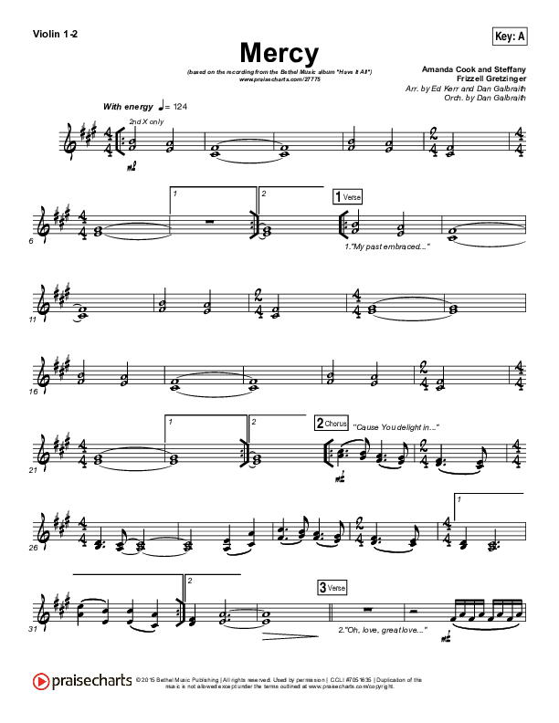 Download the Violin sheet music for Mercy by Bethel Music / Amanda Lindsey Cook, from the album Have It All. This song was arranged by Ed Kerr / Daniel Galbraith in the key of A, Gb.