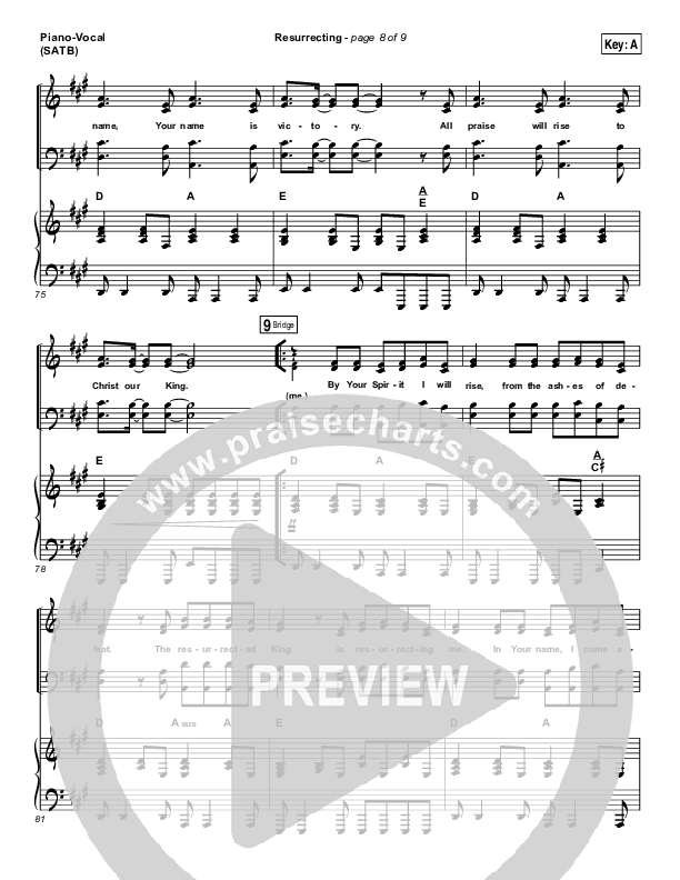 Download the sheet music for Resurrecting (Live) by Elevation Worship, from the album Here As In Heaven. This song was arranged by Jared Haschek / Daniel Galbraith in the key of A, B, Bb, C, D, Db.