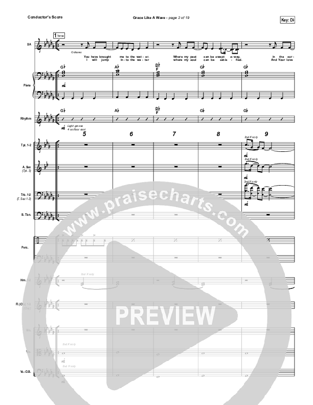 Download the Orchestration for Grace Like A Wave by Elevation Worship, from the album Here As In Heaven. This song was arranged by Dustin Loehrs / Daniel Galbraith in the key of C, D, Db, Eb.