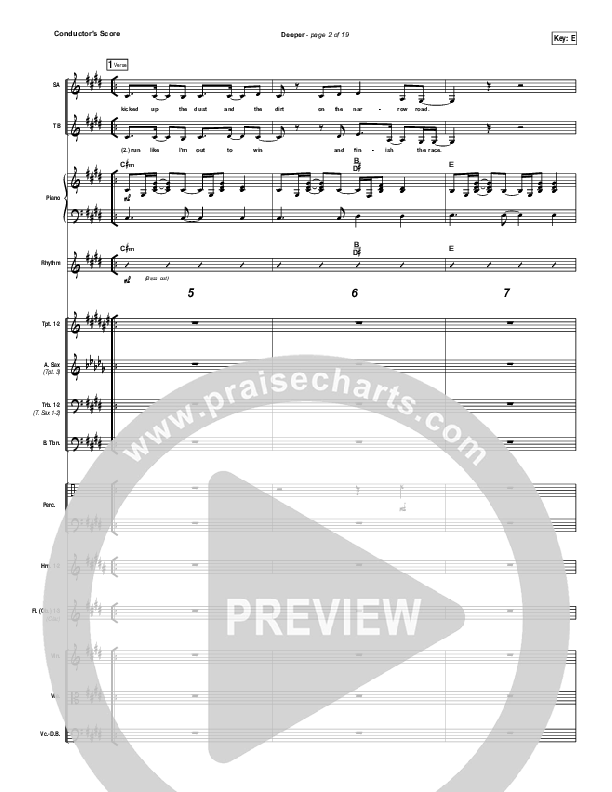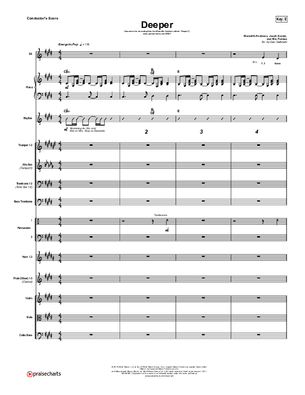 Download the Orchestration for Deeper by Meredith Andrews, from the album Deeper. This song was arranged by Daniel Galbraith in the key of E, F.