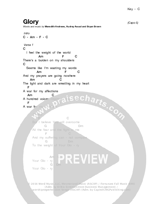 Glory Chords PDF (Meredith Andrews)