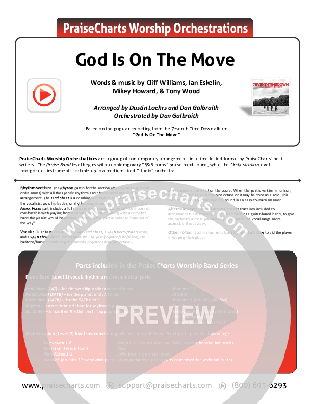 Download the Orchestration for God Is On The Move by 7eventh Time Down, from the album God Is On The Move. This song was arranged by Dustin Loehrs / Daniel Galbraith in the key of C, D, E, Eb, F, G, Gb.