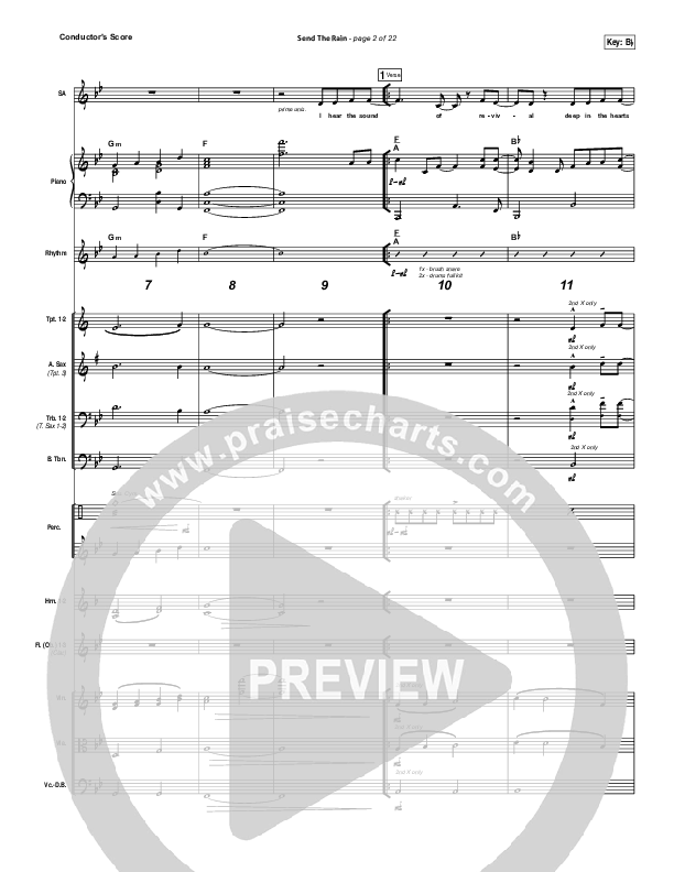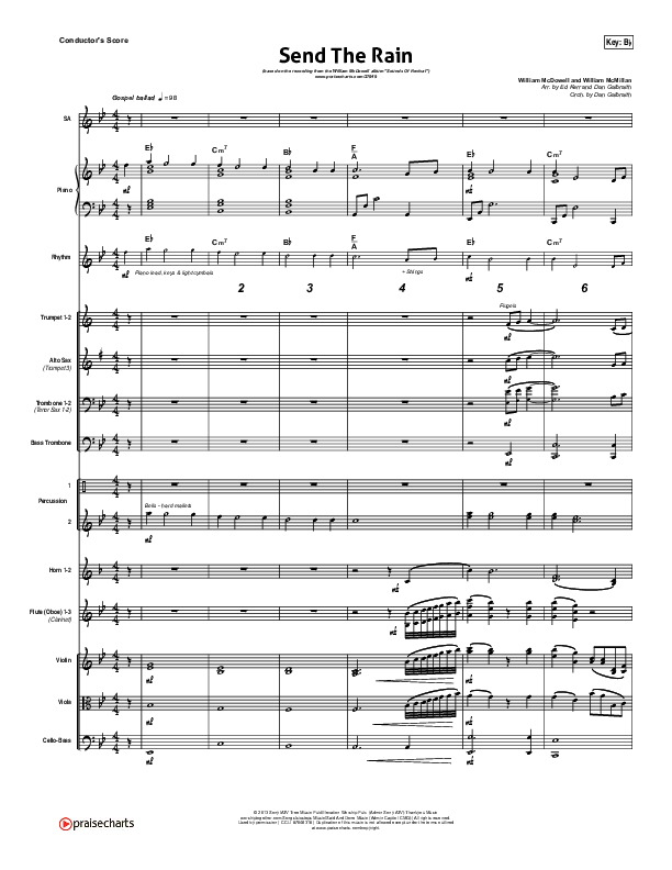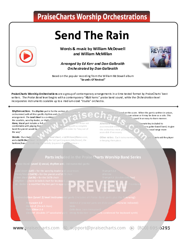 Download the Orchestration for Send The Rain by William McDowell, from the album Sounds Of Revival. This song was arranged by Ed Kerr / Daniel Galbraith in the key of A, Bb.