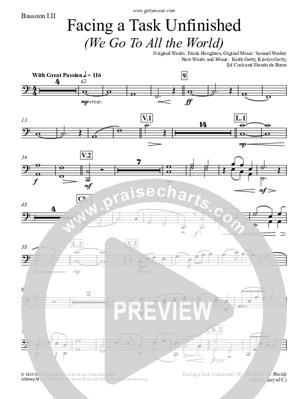 Download the Orchestration for Facing A Task Unfinished (Version 1) by Keith & Kristyn Getty, from the album Facing A Task Unfinished. This song was arranged by Getty Music in the key of C, D, Eb.
