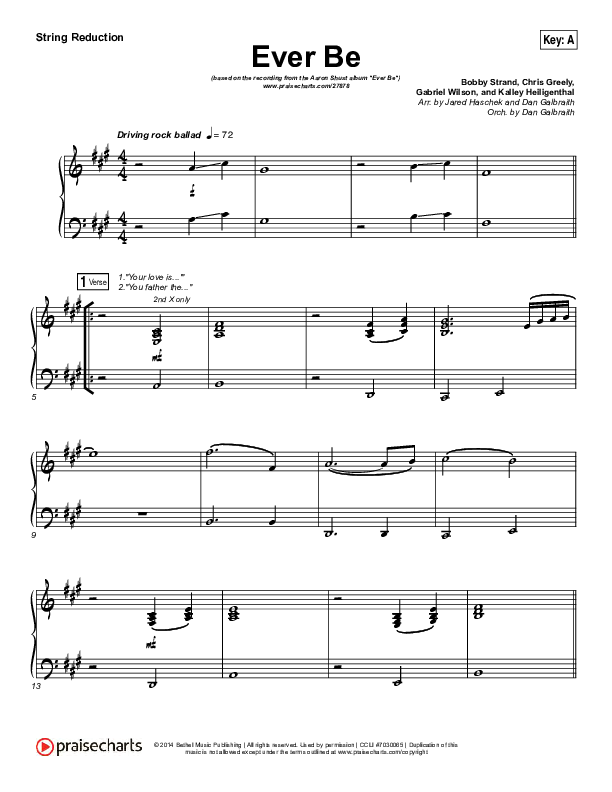 Download the Orchestration for Ever Be by Aaron Shust, from the album Ever Be. This song was arranged by Jared Haschek / Daniel Galbraith in the key of A, Ab, E, F, G.