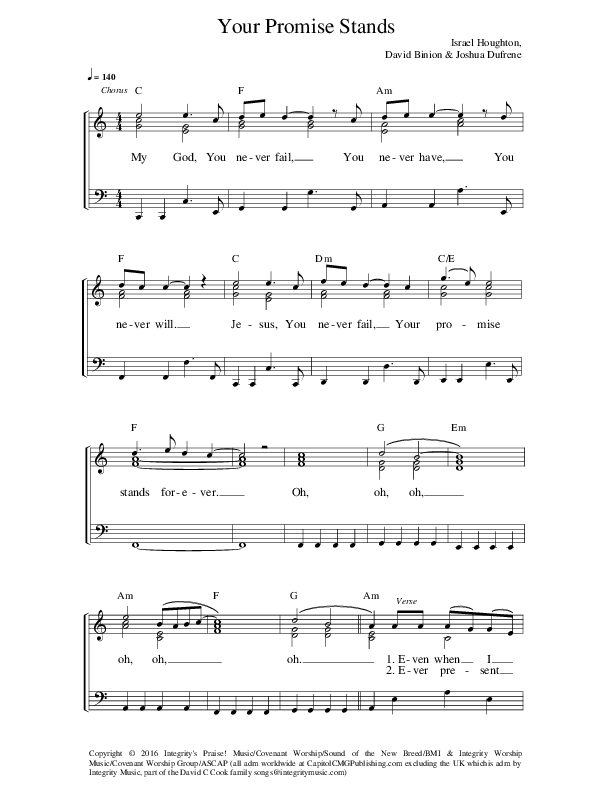 Download the sheet music for Your Promise Stands by Covenant Worship, from the album Take Heart. This song was arranged by Integrity Music in the key of C.