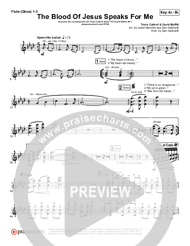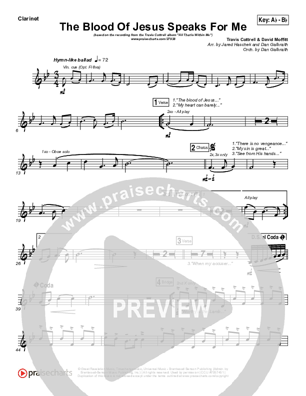 Download the Orchestration wind parts for The Blood Of Jesus Speaks For Me by Travis Cottrell, from the album All That Is Within Me. This song was arranged by Jared Haschek / Daniel Galbraith in the key of Ab, G.