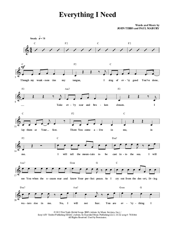 © 2015 Open Hands Music, Fair Trade Global Songs (Admin. by Essential Music Publishing LLC) CCLI Song No. 7038466
