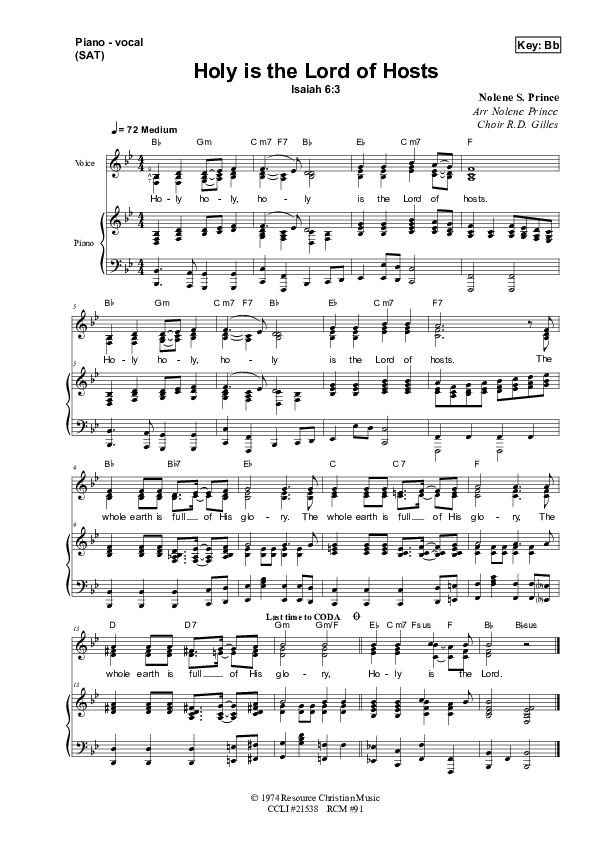 Download the sheet music for Holy Is The Lord Of Hosts by Dennis Prince / Nolene Prince, from the album Resource Christian Music.