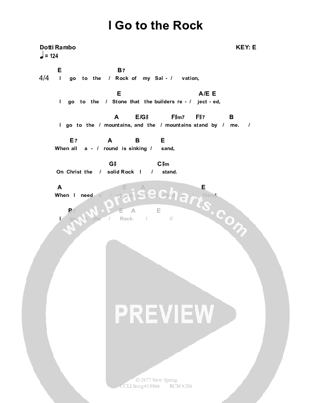 Download the PDF Chord Charts for I Go To The Rock by Dennis Prince / Nolene Prince, from the album Resource Christian Music.