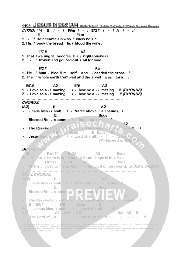 Download the PDF Chord Charts for Jesus Messiah by Dennis Prince / Nolene Prince, from the album Resource Christian Music.