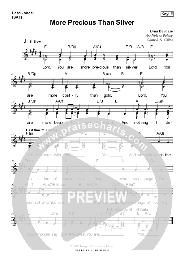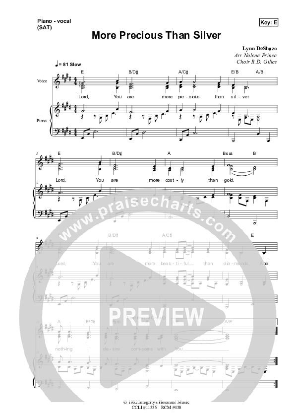Download the sheet music for More Precious Than Silver by Dennis Prince / Nolene Prince, from the album Resource Christian Music.