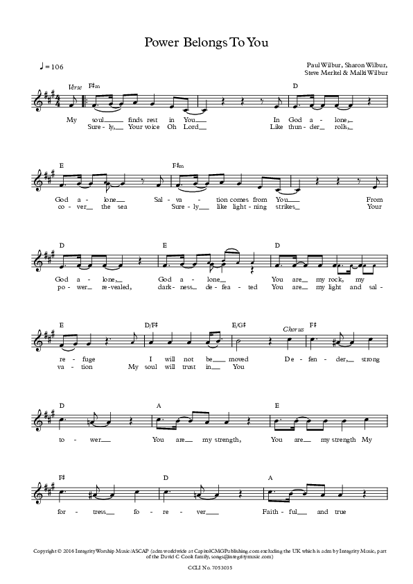 Download the sheet music for Power Belongs To You by Paul Wilbur, from the album Forever Good. This song was arranged by Integrity Music in the key of A.
