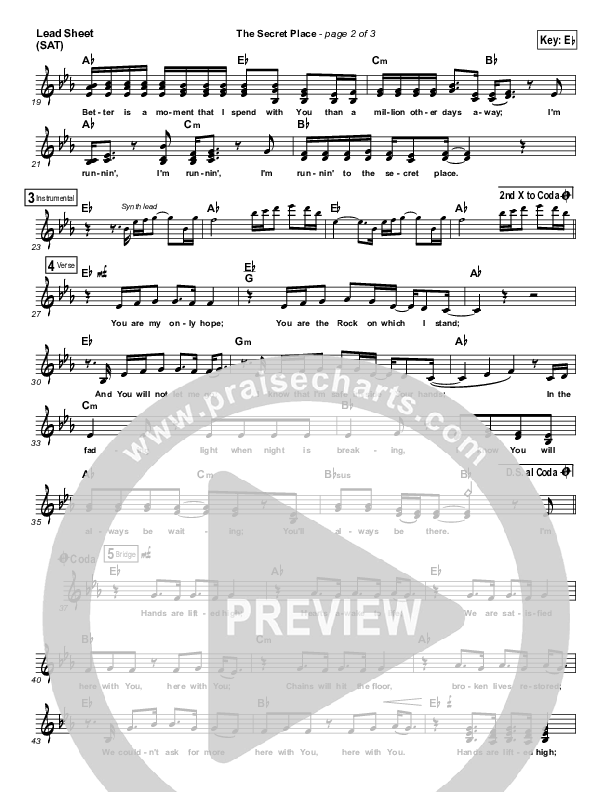Download the sheet music for The Secret Place by Phil Wickham / Madison Cunningham, from the album Children Of God. This song was arranged by Ed Kerr in the key of D, Eb, F.