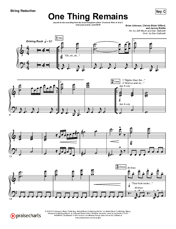 Download the Orchestration for One Thing Remains by Israel Houghton, from the album Covered: Alive in Asia. This song was arranged by Jeff Moore / Daniel Galbraith in the key of C, D.