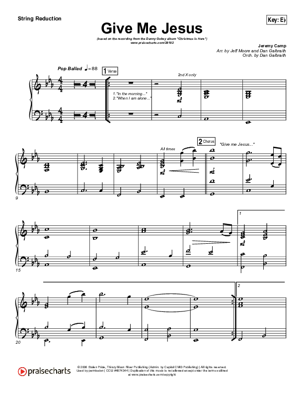 Download the Orchestration for Give Me Jesus by Danny Gokey, from the album Christmas Is Here. This song was arranged by Jeff Moore / Daniel Galbraith in the key of D, Eb.