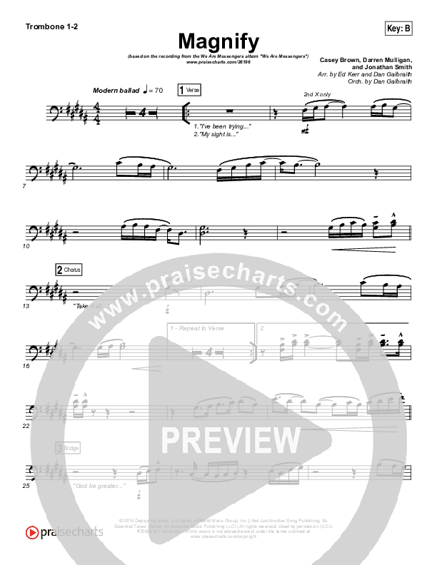 Download the Trombone 1,2 sheet music for Magnify by We Are Messengers, from the album We Are Messengers. This song was arranged by Ed Kerr / Daniel Galbraith in the key of B, Bb.
