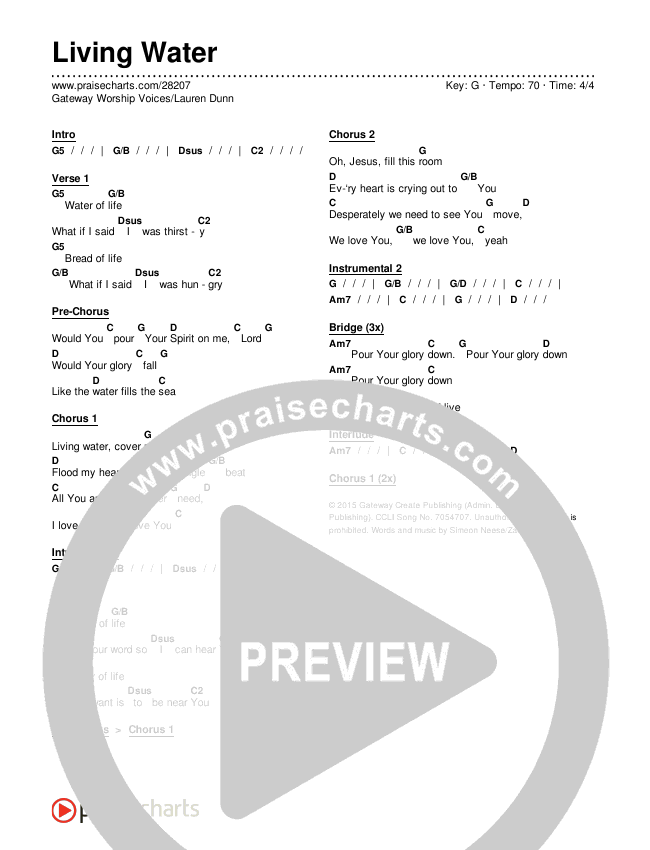 Living Water Chords PDF (Gateway Worship Voices / Lauren Dunn)