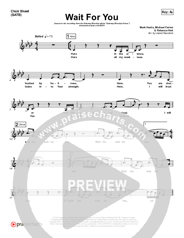 Download the Choir Sheet for Wait For You by Gateway Worship Voices / Rebecca Hart, from the album Gateway Worship Voices. This song was arranged by Jared Haschek / Gateway Worship in the key of Ab, G.