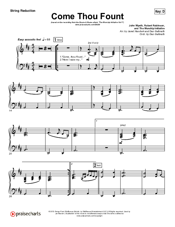 Download the Orchestration for Come Thou Fount by Shane & Shane / The Worship Initiative, from the album The Worship Initiative Volume 1. This song was arranged by Jared Haschek / Daniel Galbraith in the key of C, D.
