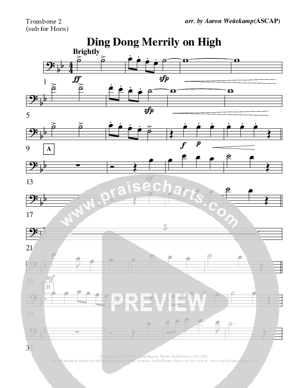 Download the Orchestration for Ding Dong Merrily On High (Instrumental) by AnderKamp Music, from the album Master's Brass Quintet Series (Vol. 1-7). This song was arranged by Aaron Weitekamp in the key of Bb.