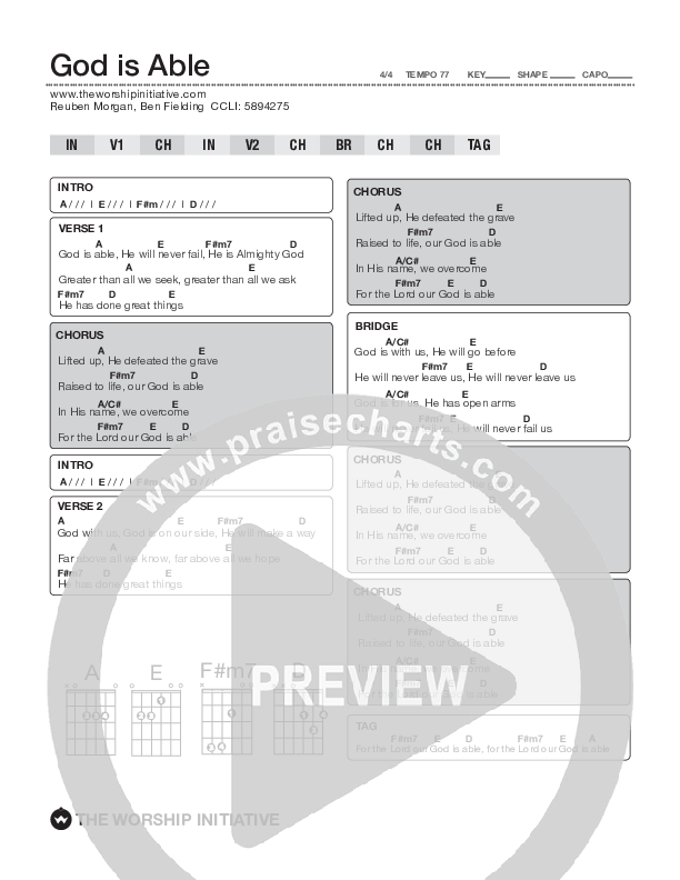 God Is Able Chord Chart (Shane & Shane / The Worship Initiative)