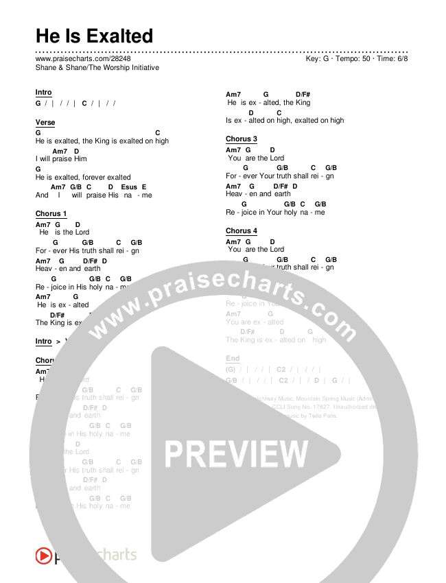 He Is Exalted Chords PDF (Shane & Shane / The Worship Initiative)