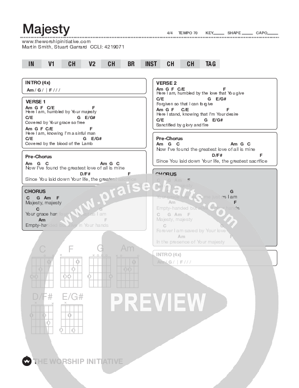 Download the PDF Chord Charts for Majesty by Shane & Shane / The Worship Initiative, from the album The Worship Initiative Volume 10. This song was arranged by WI Charts in the key of C, G, Numbers.