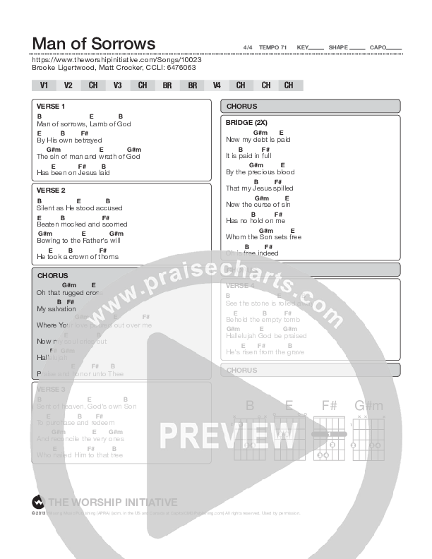 Man Of Sorrows Chords PDF (Shane & Shane / The Worship Initiative)