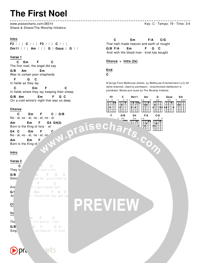 The First Noel Chords PDF (Shane & Shane / The Worship Initiative)